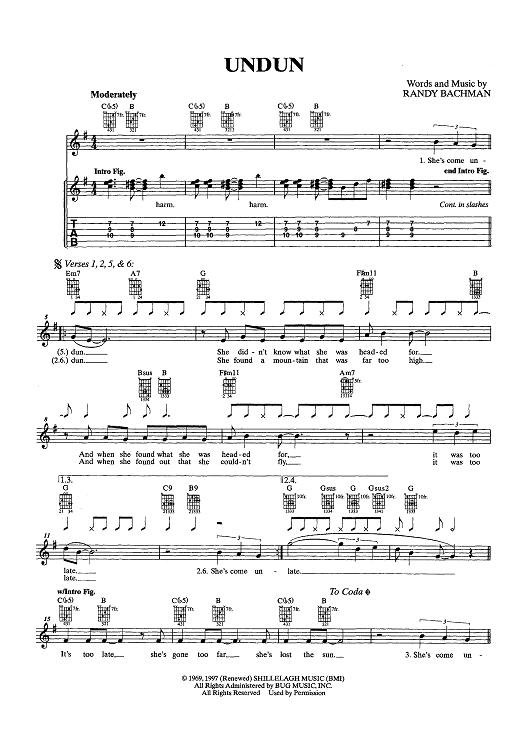 Digital Sheet Music for Undun by Randy Bachman, The Guess Who scored for Easy Guitar Tab/Vocal/Chords; id:449222