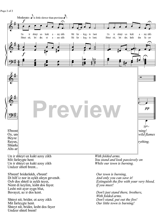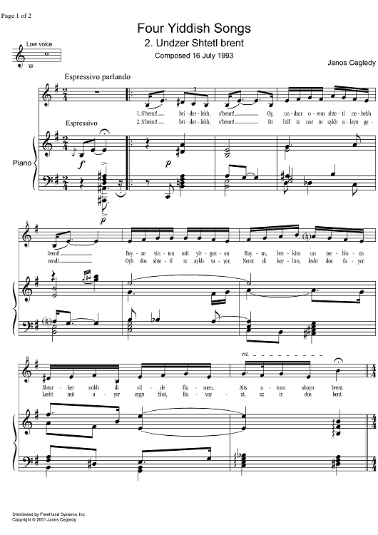 Digital Sheet Music for Undzer Shtetl brent by , Janos Cegledy scored for Alto or Bass/Piano; id:332201