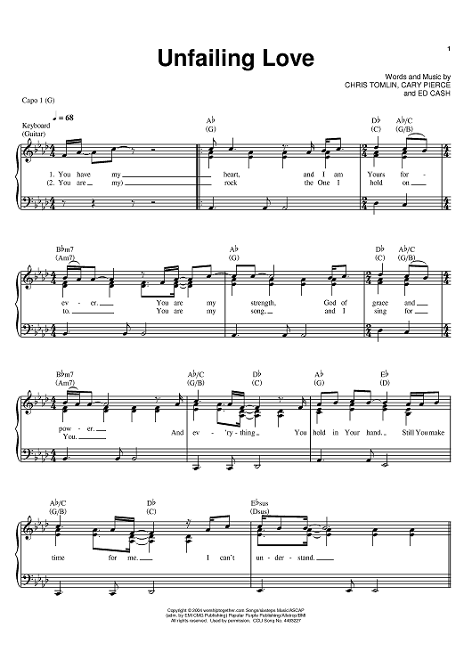 Digital Sheet Music for Unfailing Love by Chris Tomlin, Ed Cash, Cary Pierce scored for Piano/Vocal/Chords; id:393801