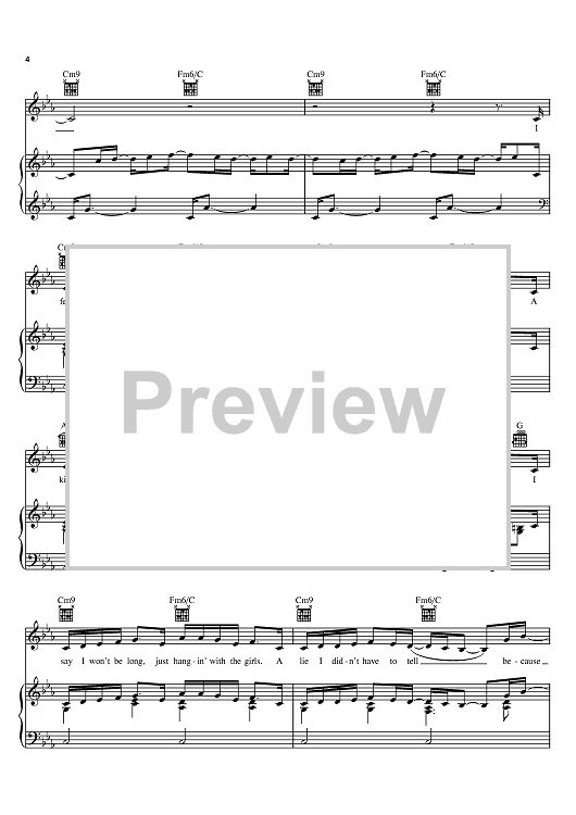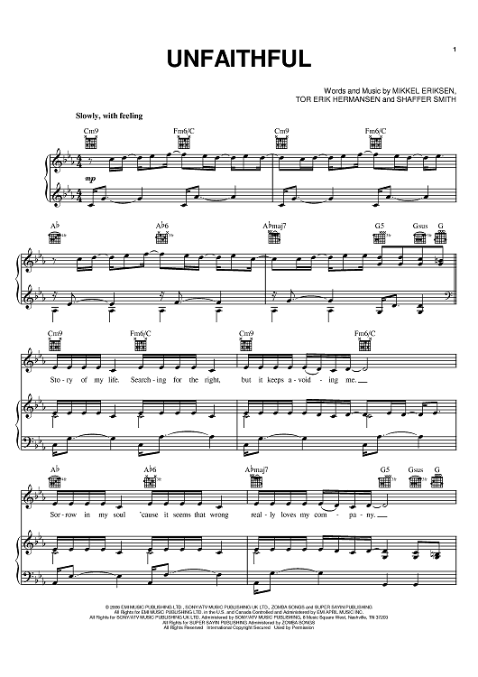 Digital Sheet Music for Unfaithful by Tor Erik Hermansen, Ne-Yo, Rihanna, Mikkel Eriksen scored for Piano/Vocal/Chords; id:390750