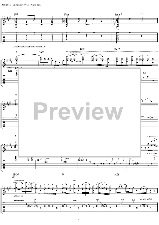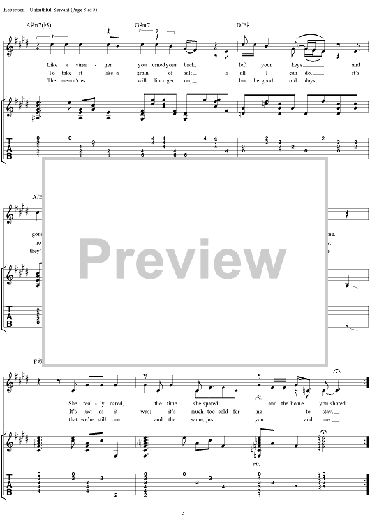 "Unfaithful Servant" Sheet Music by Robbie Robertson
