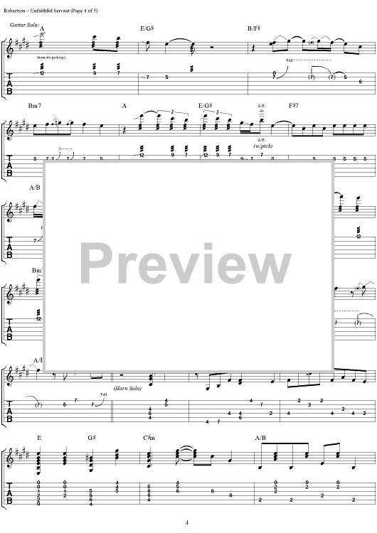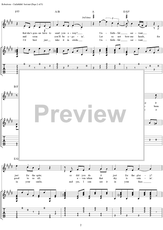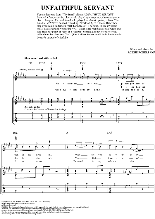 Digital Sheet Music for Unfaithful Servant by Robbie Robertson scored for Guitar Tab/Vocal; id:255728