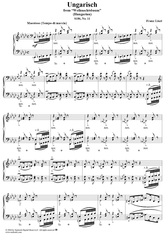 Digital Sheet Music for Ungarisch, No. 11 from "Weihnachtsbaum", S186 by Franz Liszt scored for Piano Solo; id:295008