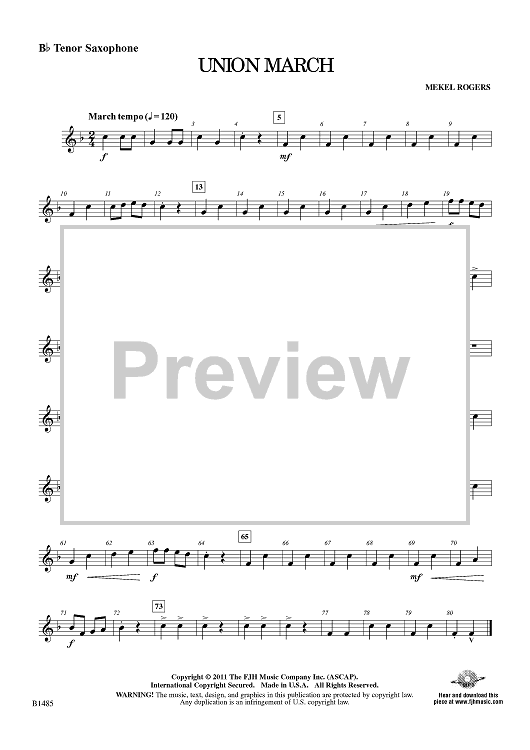 "Union March - Bb Tenor Sax" Sheet Music by Mekel Rogers