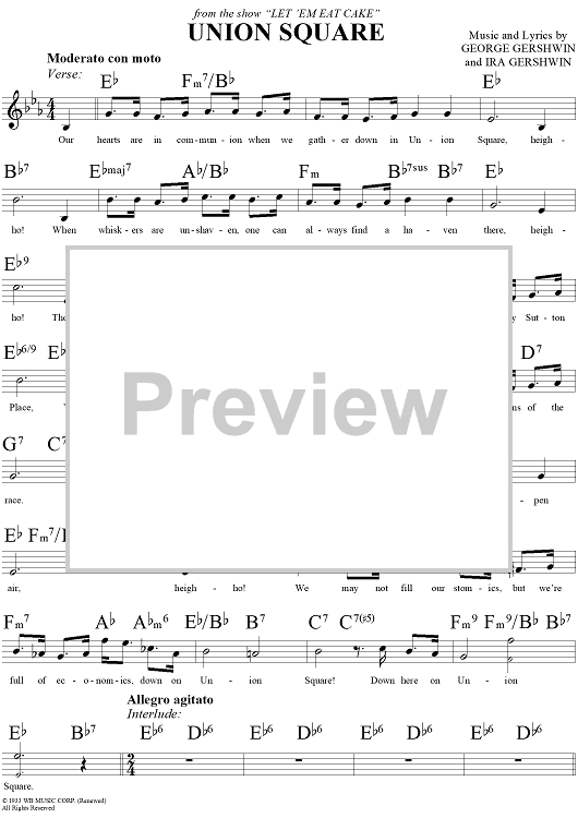 Digital Sheet Music for Union Square by , George Gershwin, Ira Gershwin scored for Lead Sheet; id:283757