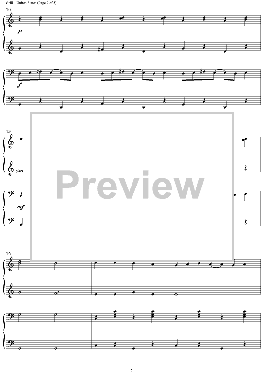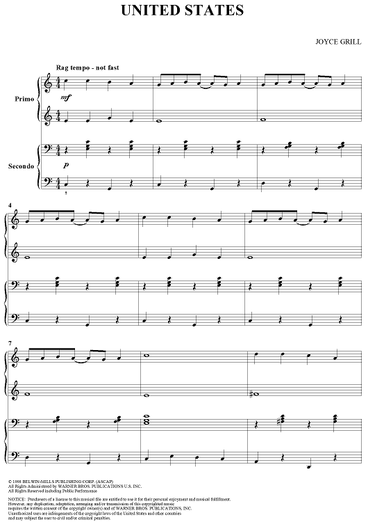 Digital Sheet Music for United States by Joyce Grill scored for 1 Piano, 4 Hands; id:287316