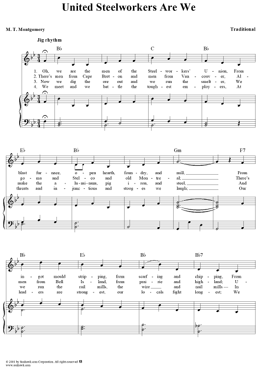Digital Sheet Music for United Steelworkers Are We by M. T. Montgomery, Traditional scored for Piano/Vocal/Chords; id:262046