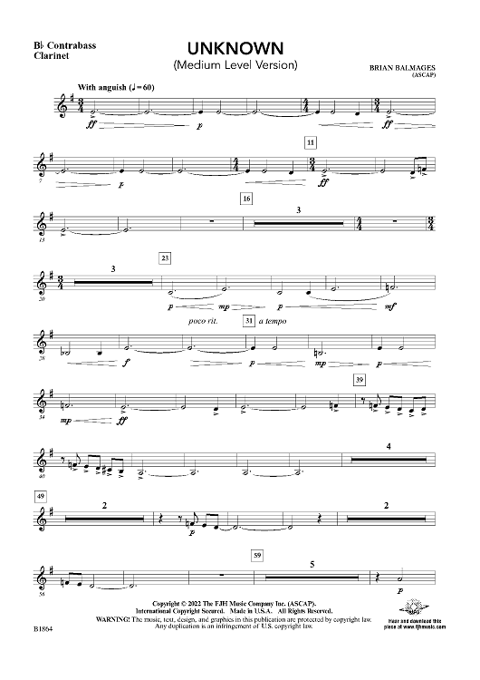 Digital Sheet Music for Unknown (Medium Level Version) - Bb Contra Bass Clarinet by Brian Balmages scored for Concert Band; id:498303
