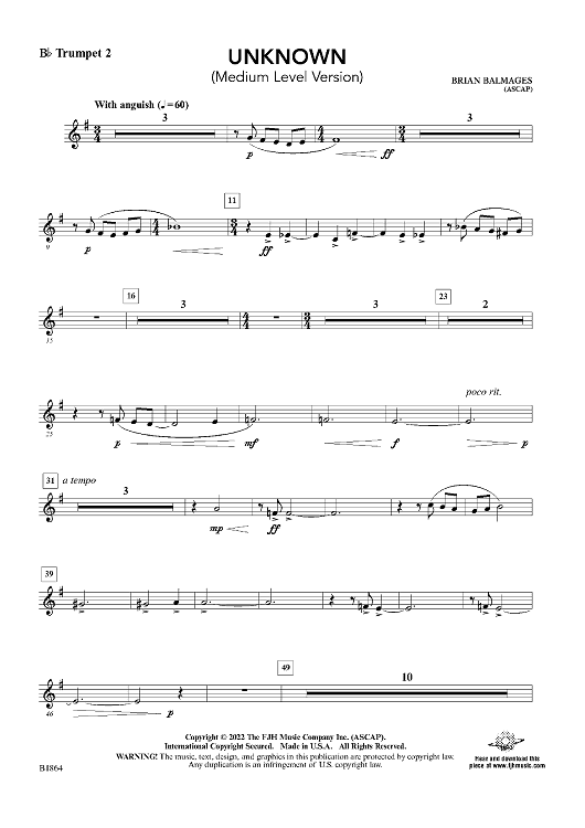 "Unknown (Medium Level Version) - Bb Trumpet 2" Sheet Music by Brian Balmages