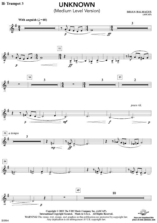 "Unknown (Medium Level Version) - Bb Trumpet 3" Sheet Music by Brian Balmages