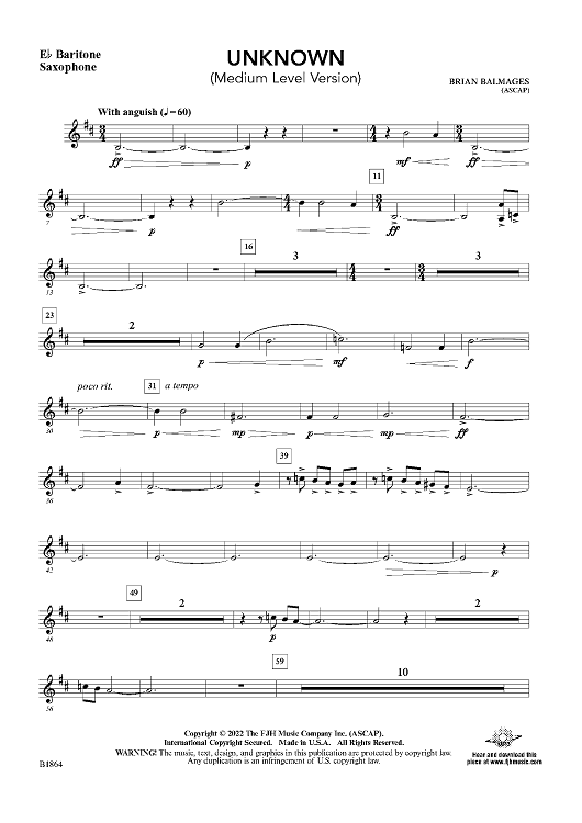 Digital Sheet Music for Unknown (Medium Level Version) - Eb Baritone Sax by Brian Balmages scored for Concert Band; id:498307