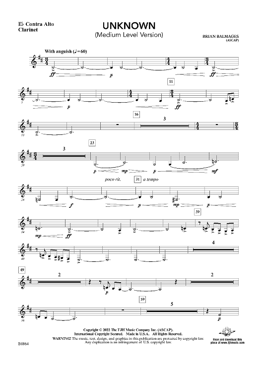 "Unknown (Medium Level Version) - Eb Contra Alto Clarinet" Sheet Music by Brian Balmages