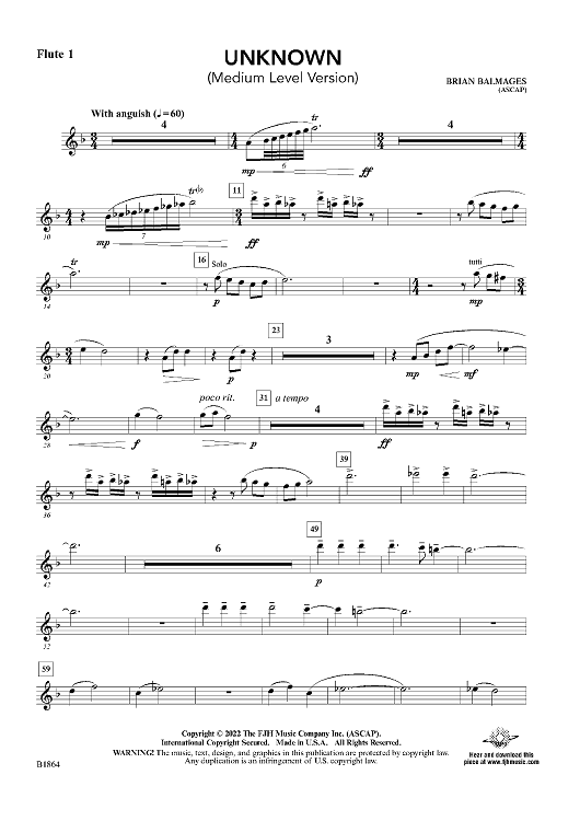 "Unknown (Medium Level Version) - Flute 1" Sheet Music by Brian Balmages