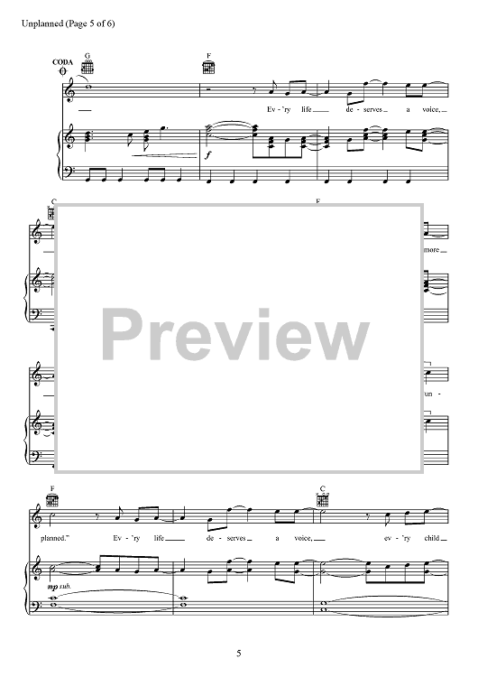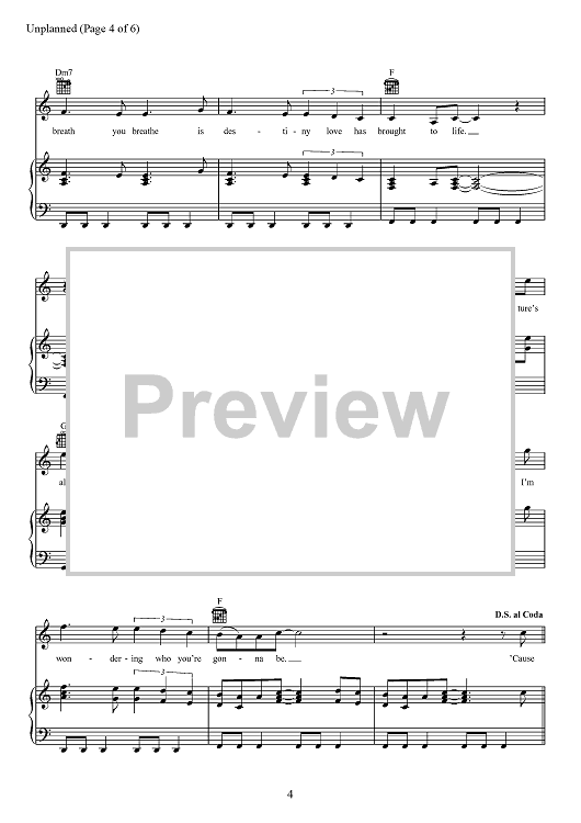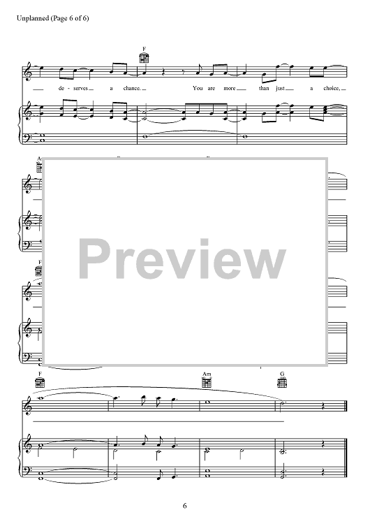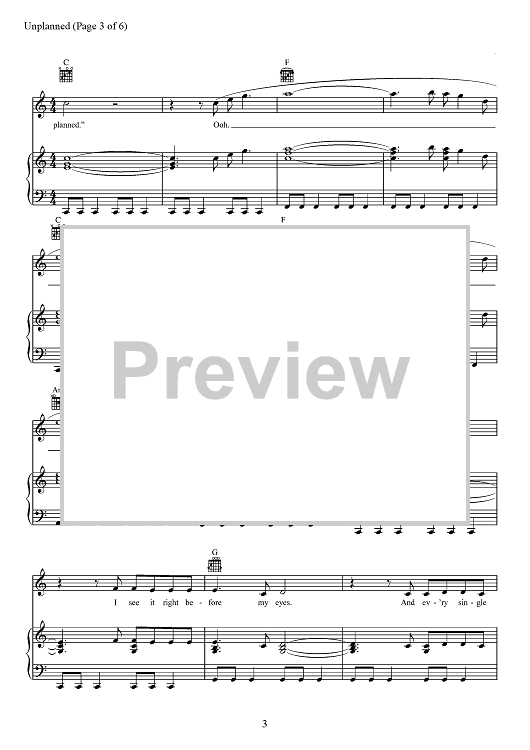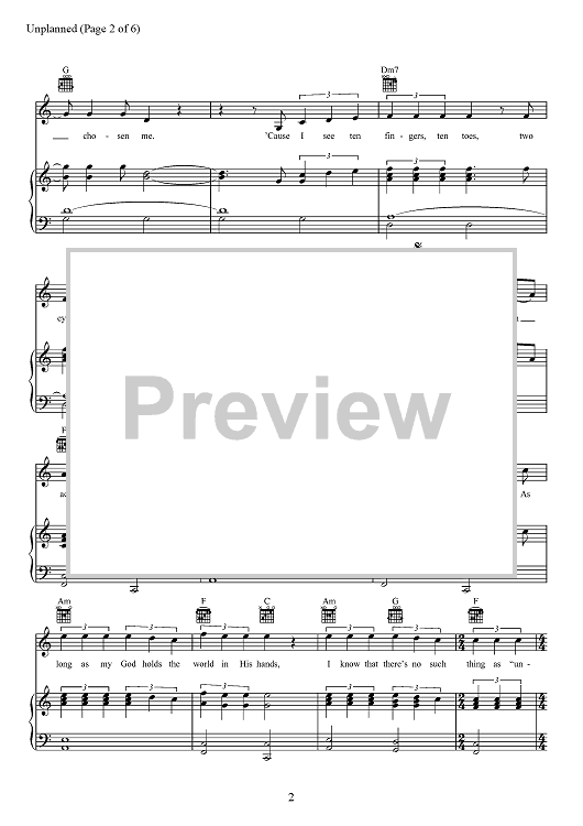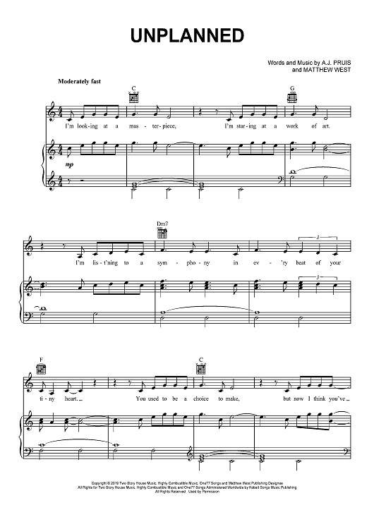 Digital Sheet Music for Unplanned by Matthew West, A. J. Pruis scored for Piano/Vocal/Chords; id:467503