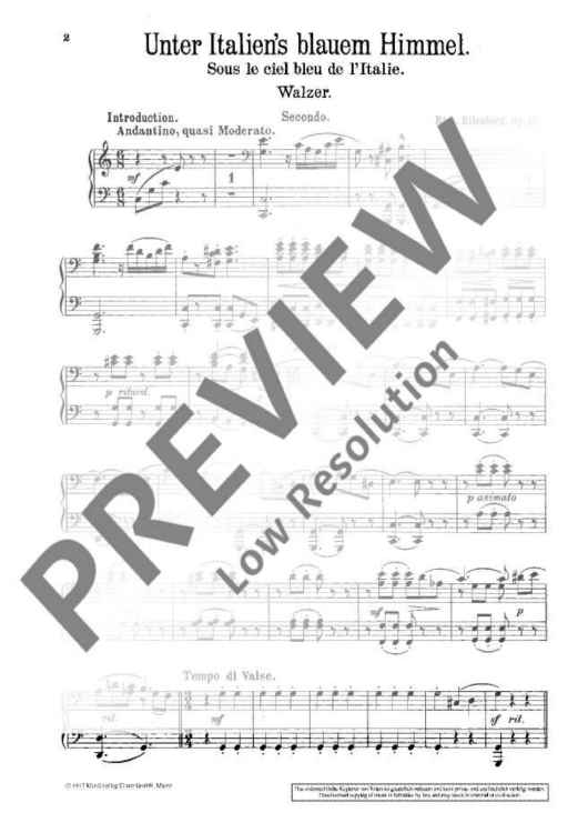 Digital Sheet Music for Unter Italiens blauem Himmel by Richard Eilenberg scored for Piano (4 Hands); id:472177