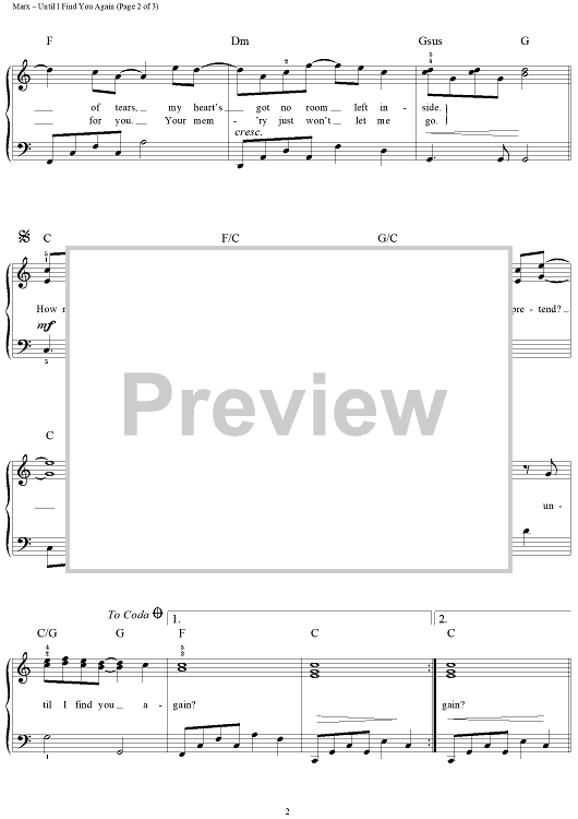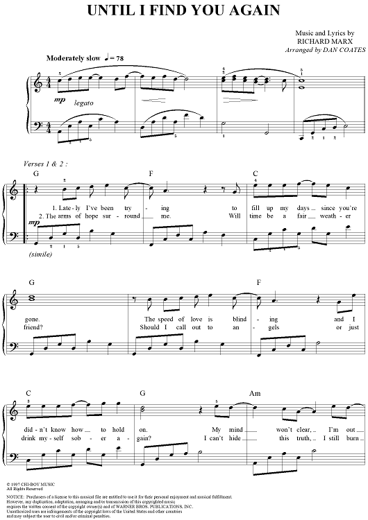 Digital Sheet Music for Until I Find You Again by Richard Marx scored for Easy Piano/Vocal; id:235418