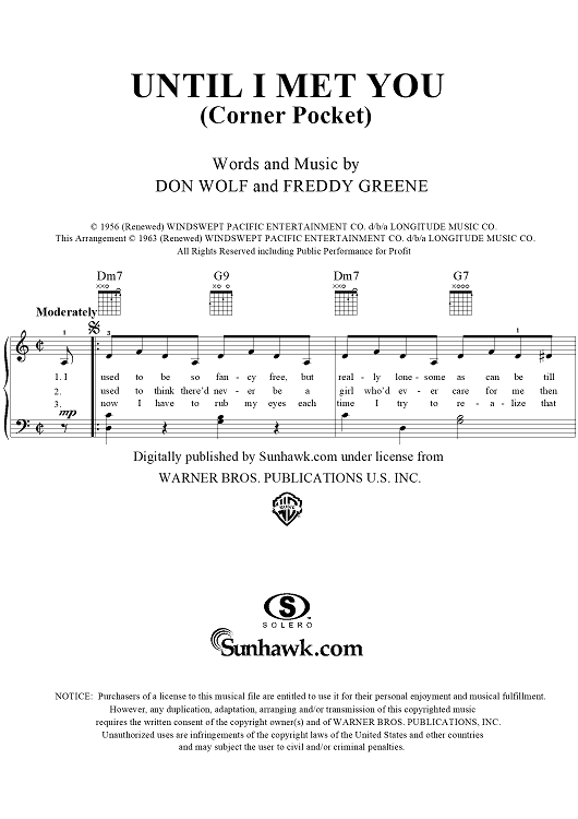 Digital Sheet Music for Until I Met You (Corner Pocket) by Count Basie, Don Wolf, Freddy Greene scored for Piano/Vocal/Chords; id:263581