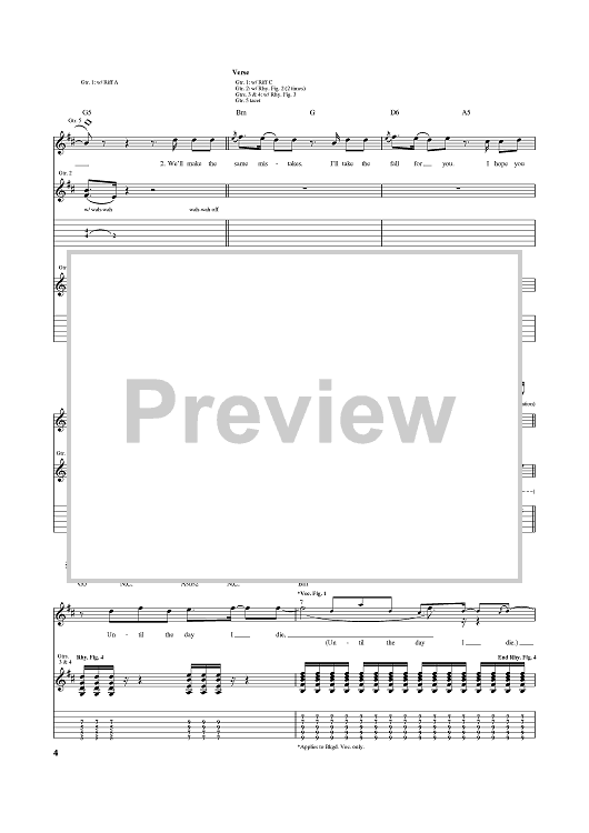 Digital Sheet Music for Until The Day I Die by Dan Marsala, Ryan Phillips, Adam Russell, Story Of The Year scored for Guitar Tab; id:373983