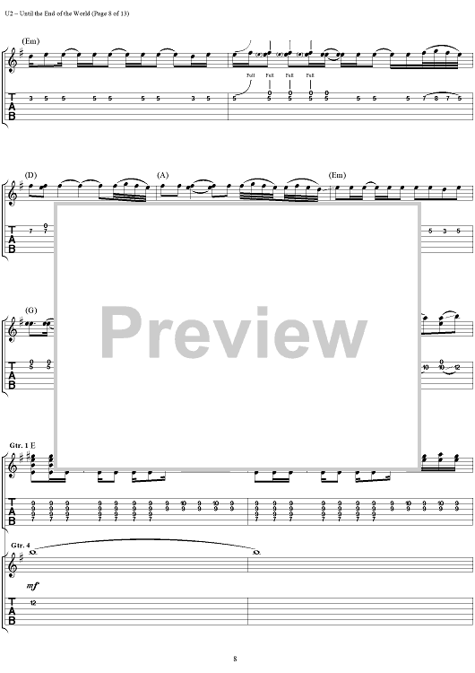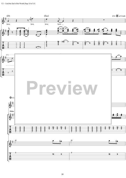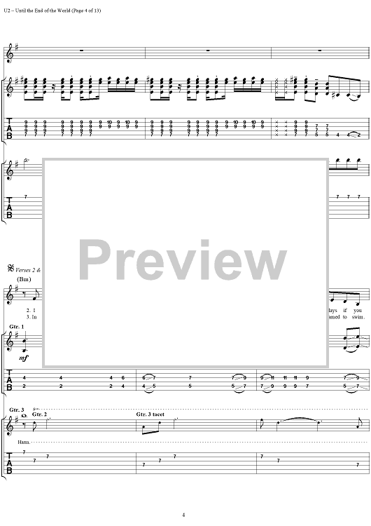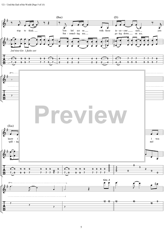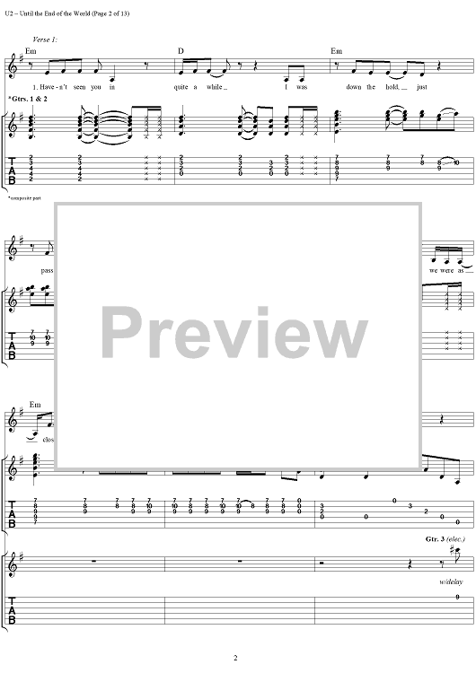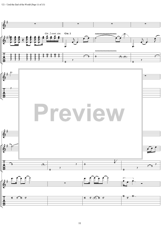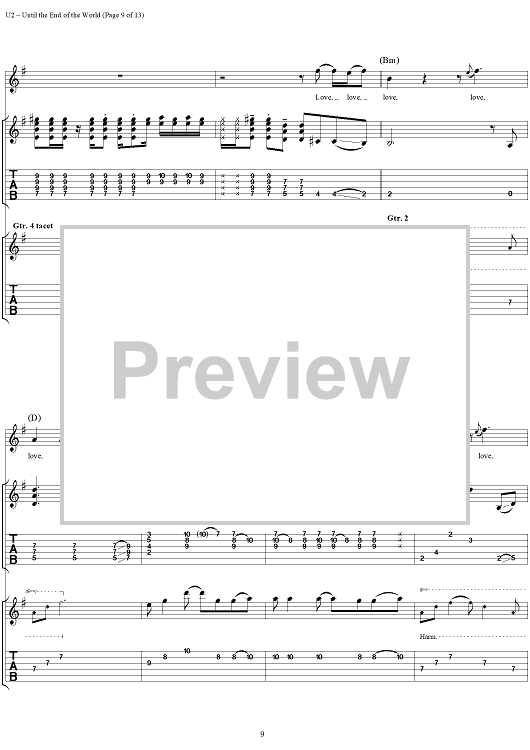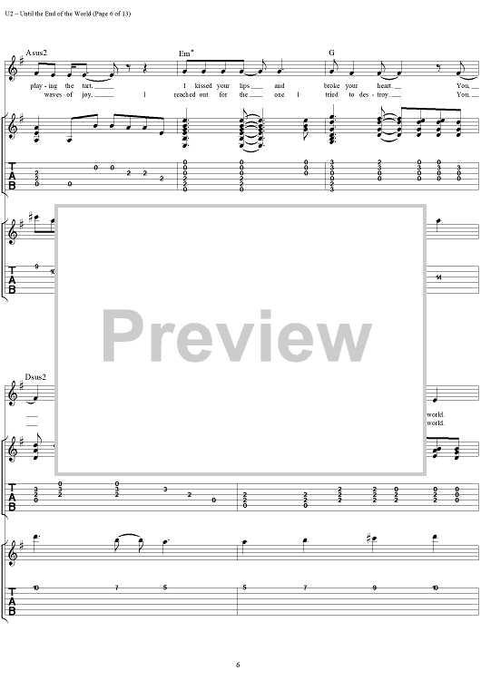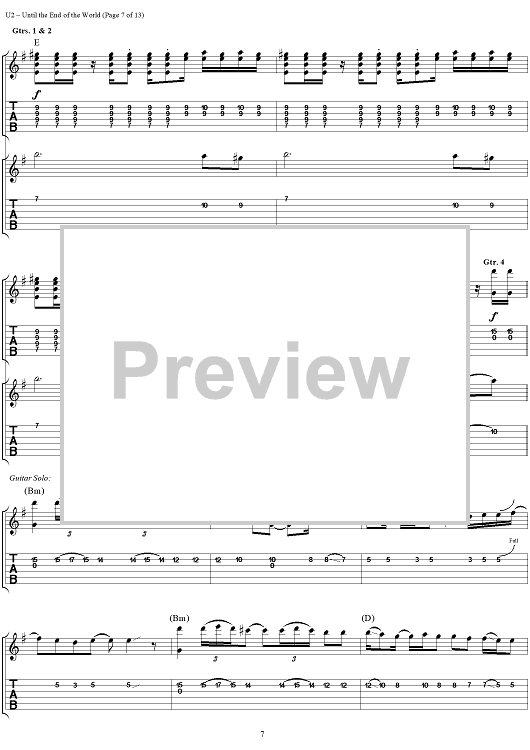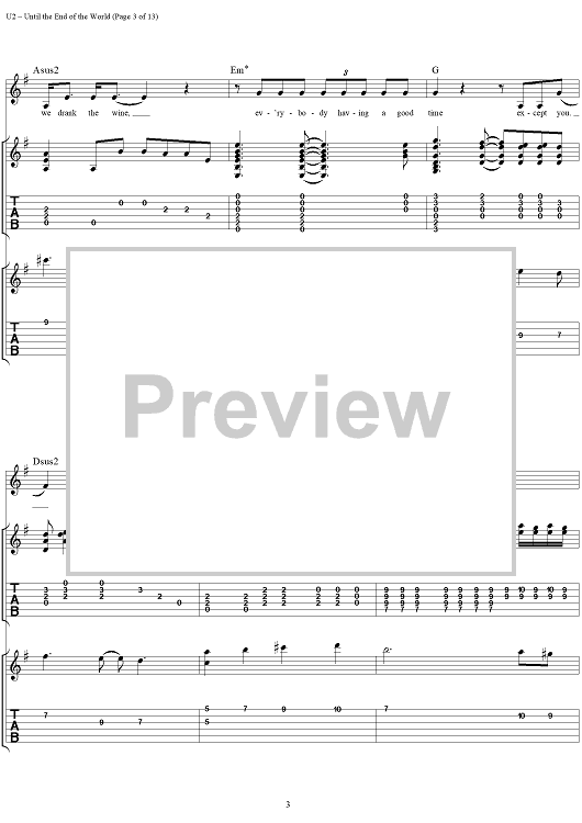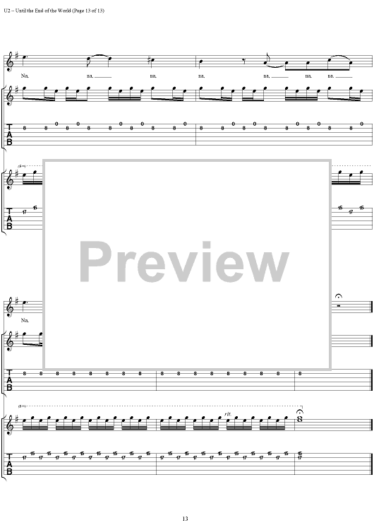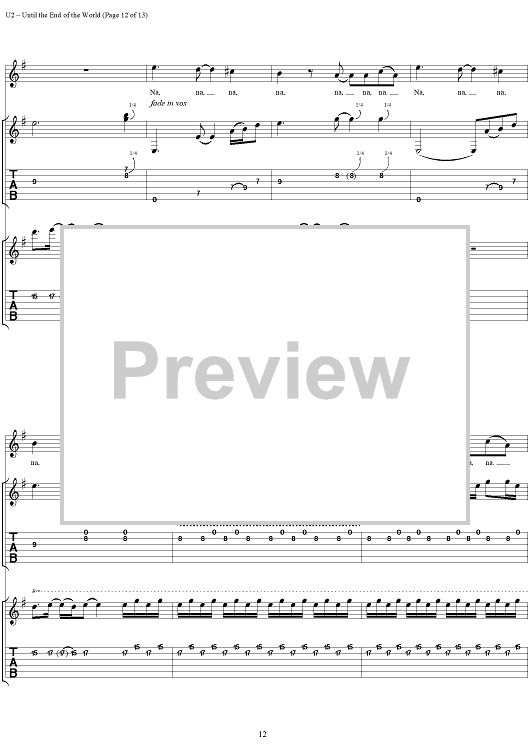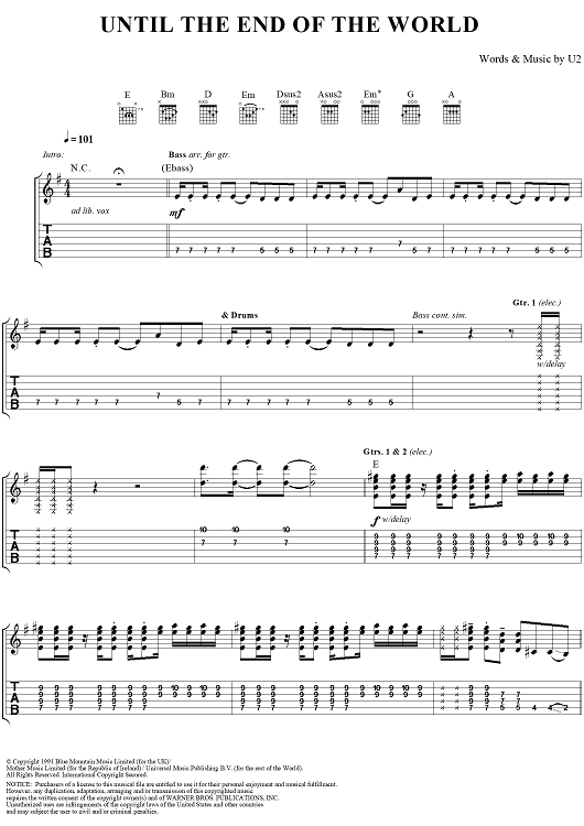 Digital Sheet Music for Until the End of the World by U2 scored for Guitar Tab/Vocal; id:296469