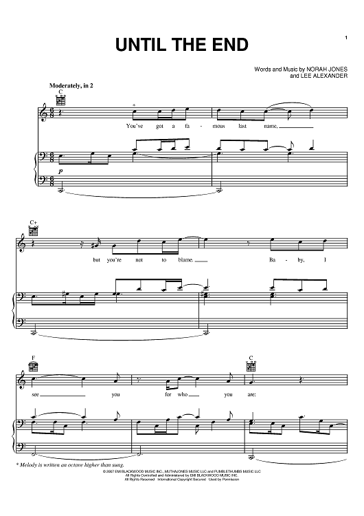 Digital Sheet Music for Until The End by Norah Jones, Lee Alexander scored for Piano/Vocal/Chords; id:397577