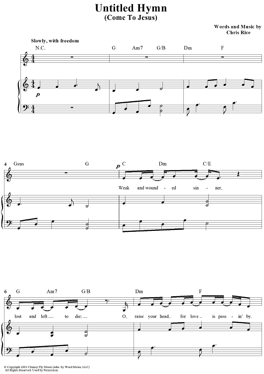 "Untitled Hymn (Come To Jesus)" Sheet Music by Chris Rice