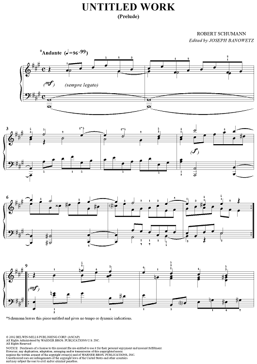 "Untitled Work (Prelude)" Sheet Music by Robert Schumann