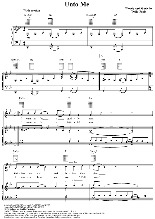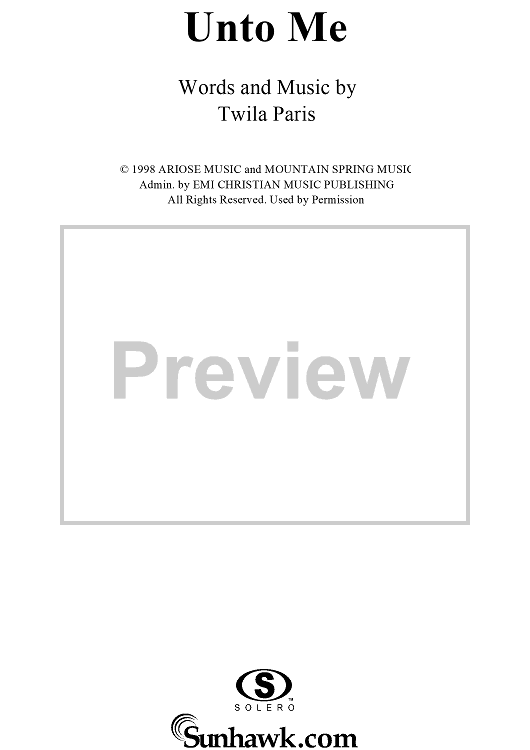 Digital Sheet Music for Unto Me by Twila Paris, Steve Green scored for Piano/Vocal/Chords; id:119510