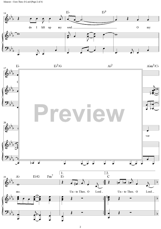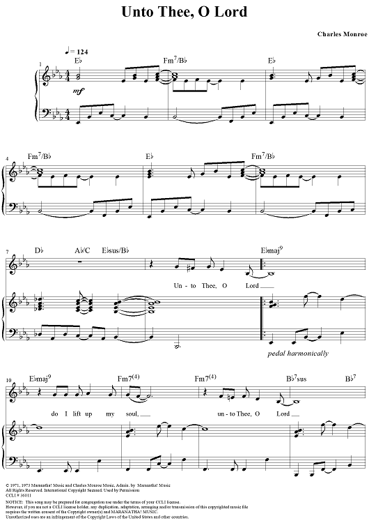 Digital Sheet Music for Unto Thee, O Lord by Charles Monroe scored for Piano/Vocal/Chords; id:220564