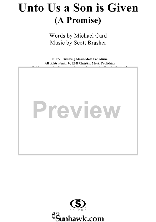 Digital Sheet Music for Unto Us a Son Is Given (A Promise) by Michael Card, Scott Brasher scored for Piano/Vocal/Chords; id:113296
