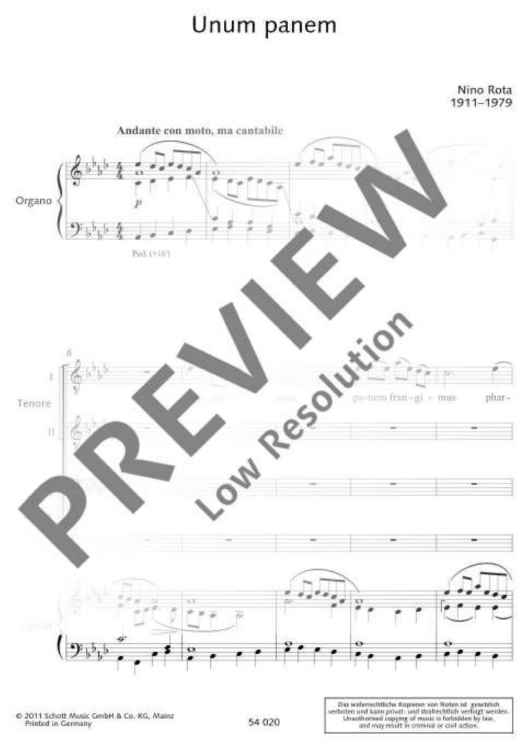 Digital Sheet Music for Unum panem - Score by Nino Rota scored for Men's Choir (ttbb) And Organ; id:484515