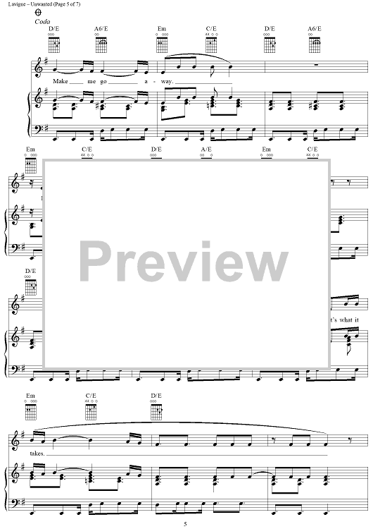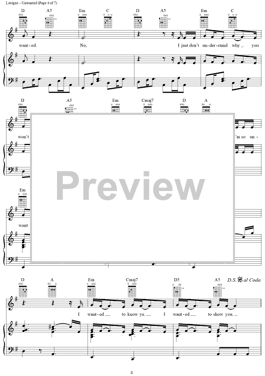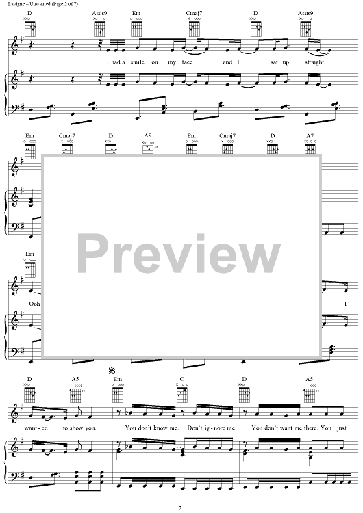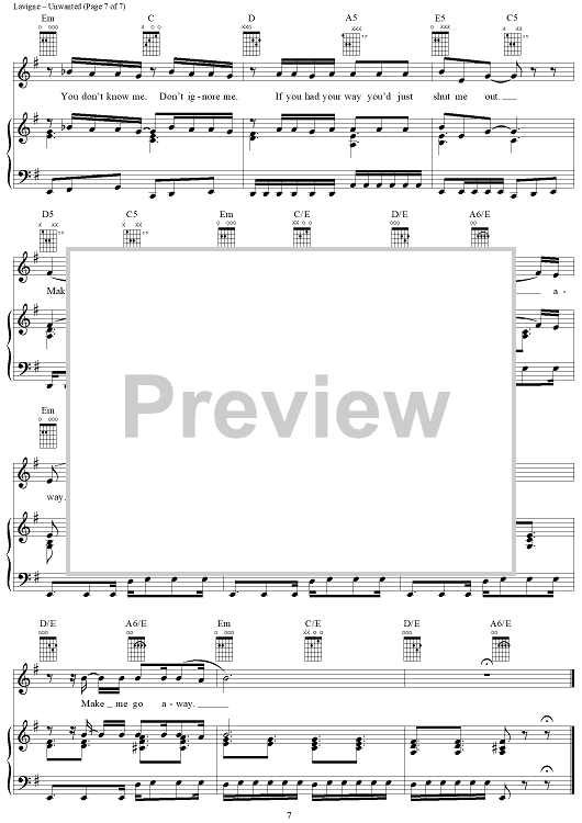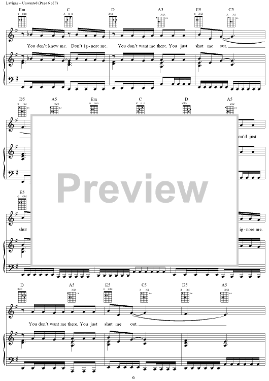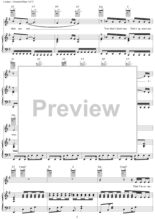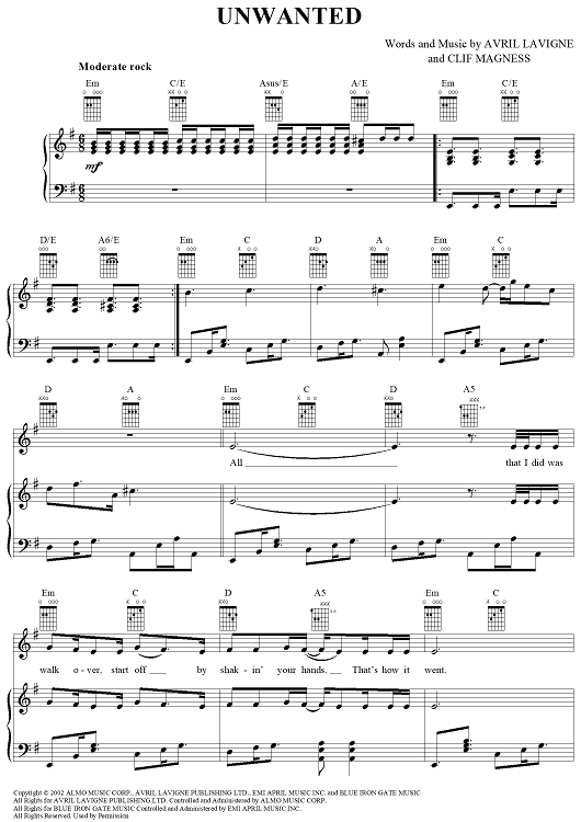Digital Sheet Music for Unwanted by Clif Magness, Avril Lavigne scored for Piano/Vocal/Chords; id:367129