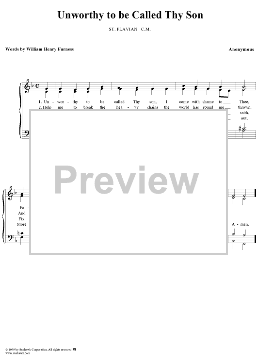 "Unworthy to be Called Thy Son" Sheet Music by Unknown Writer