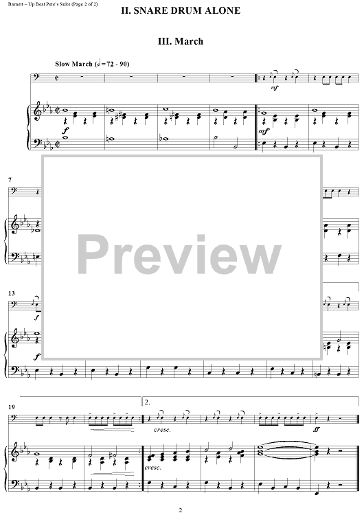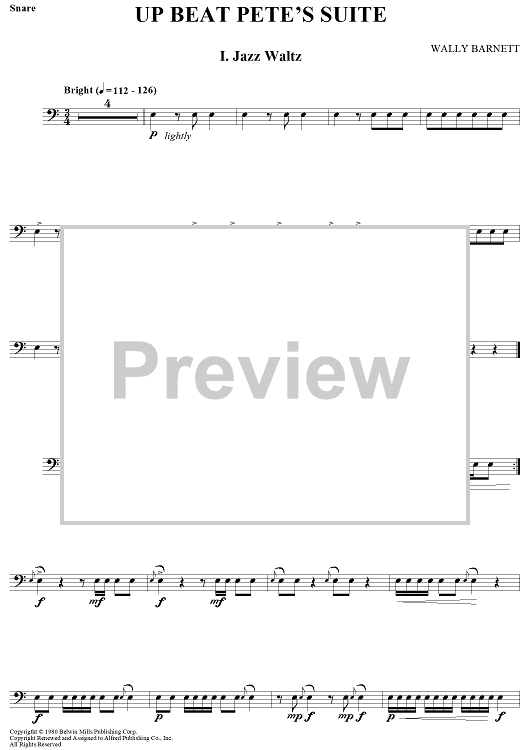 Digital Sheet Music for Up Beat Pete’s Suite by Wally Barnett scored for Snare Drum/Piano; id:437231