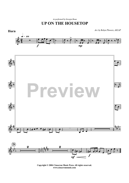 Digital Sheet Music for Up On the Housetop - Horn by , Robyn Flowers, Georgia Brass scored for Brass Quintet; id:356620