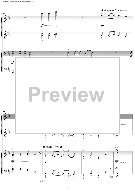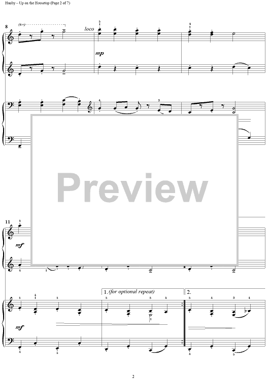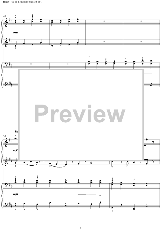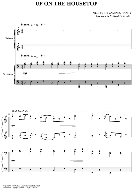 Digital Sheet Music for Up on the Housetop by Sondra Clark, Benjamin Hanby scored for 1 Piano, 4 Hands; id:379434