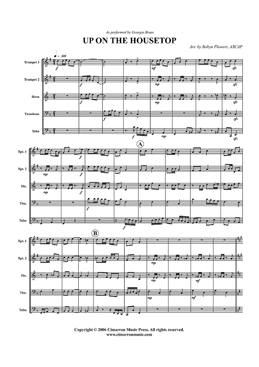 Digital Sheet Music for Up On the Housetop - Score by , Robyn Flowers, Georgia Brass scored for Brass Quintet; id:356617