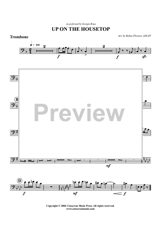 Digital Sheet Music for Up On the Housetop - Trombone by , Robyn Flowers, Georgia Brass scored for Brass Quintet; id:356621