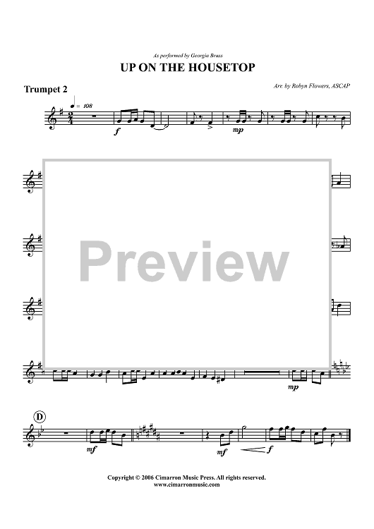 Digital Sheet Music for Up On the Housetop - Trumpet 2 by , Robyn Flowers, Georgia Brass scored for Brass Quintet; id:356619