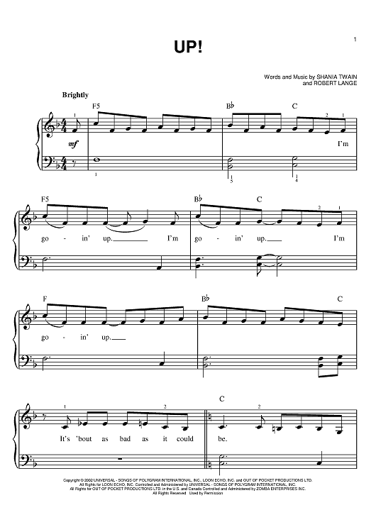 Digital Sheet Music for Up! by Shania Twain, Robert Lange scored for Easy Piano; id:379299