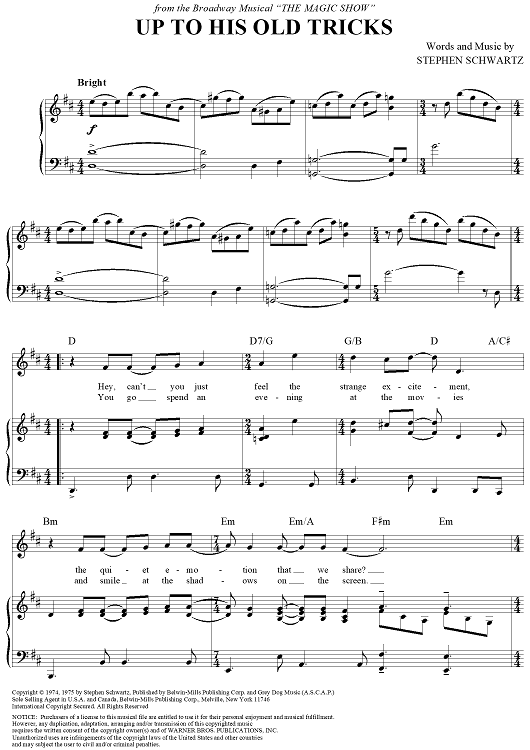 Digital Sheet Music for Up to His Old Tricks by Stephen Schwartz, Doug Henning scored for Piano/Vocal/Chords; id:356253