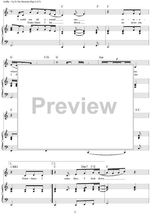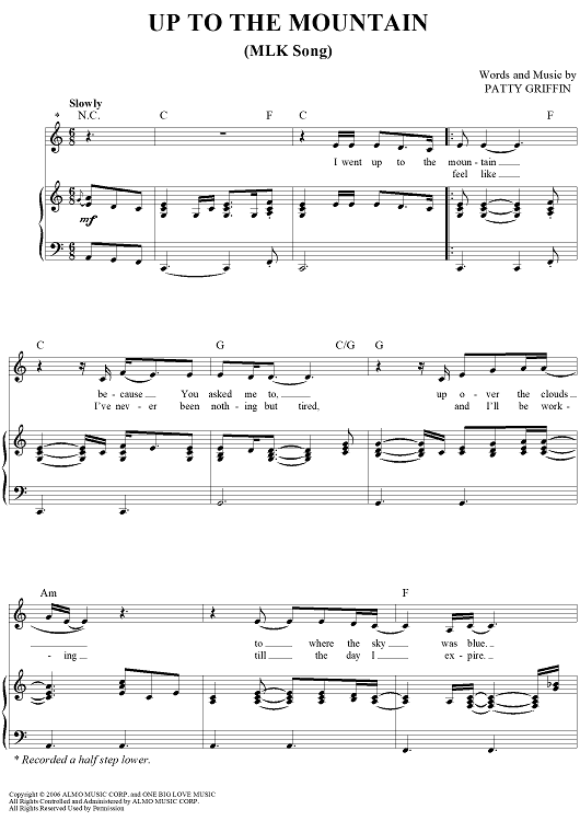 Digital Sheet Music for Up To The Mountain (MLK Song) by Patty Griffin scored for Piano/Vocal/Chords; id:412041