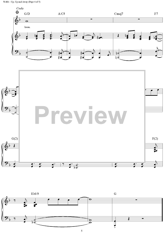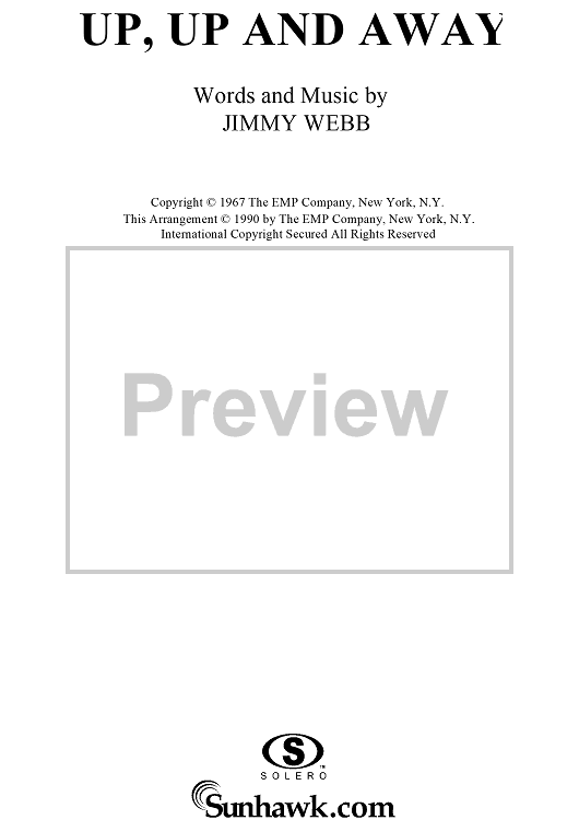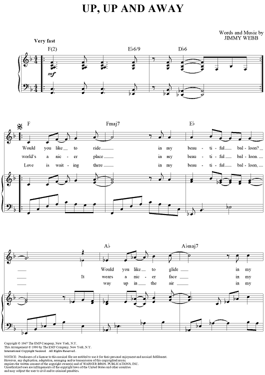 Digital Sheet Music for Up, Up and Away by The 5th Dimension, Jimmy Webb scored for Piano/Vocal/Chords; id:264097