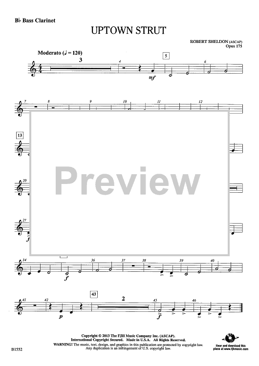 Digital Sheet Music for Uptown Strut - Bb Bass Clarinet by Robert Sheldon scored for Concert Band; id:439230