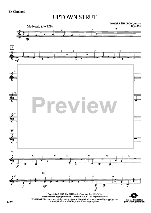 Digital Sheet Music for Uptown Strut - Bb Clarinet by Robert Sheldon scored for Concert Band; id:439228