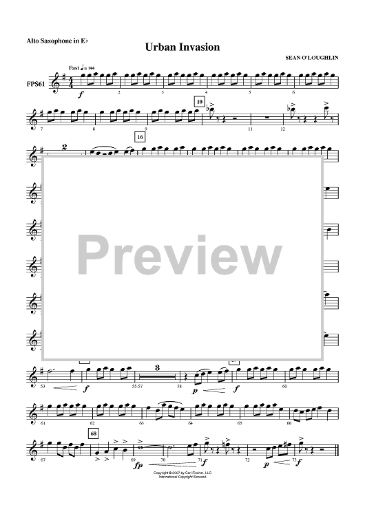 "Urban Invasion - Alto Sax" Sheet Music by Sean O'Loughlin