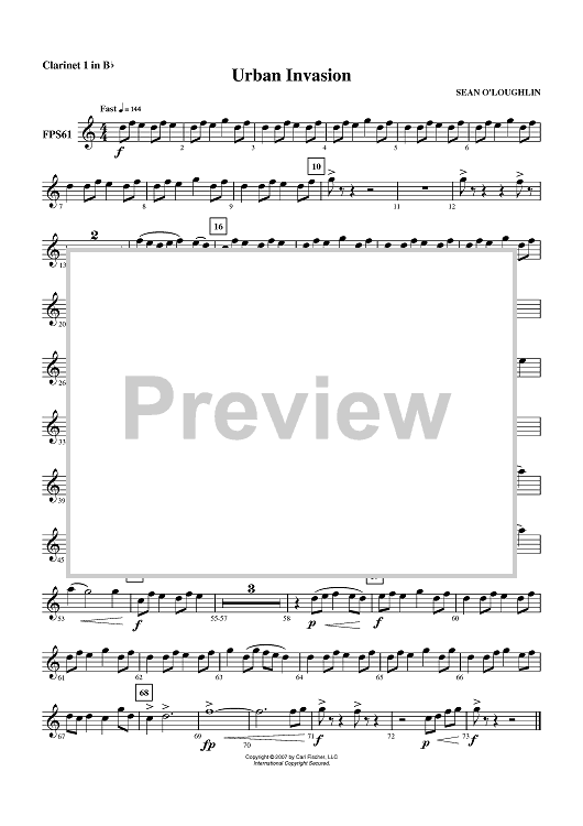 "Urban Invasion - Clarinet 1 in B-flat" Sheet Music by Sean O'Loughlin