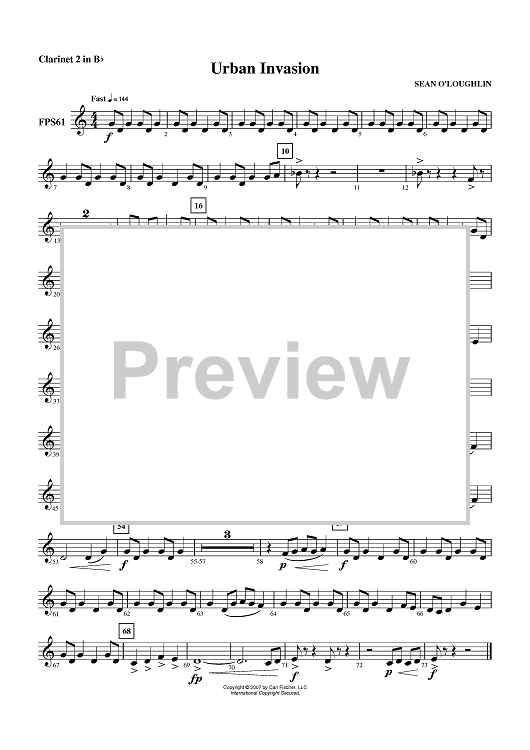 "Urban Invasion - Clarinet 2 in B-flat" Sheet Music by Sean O'Loughlin