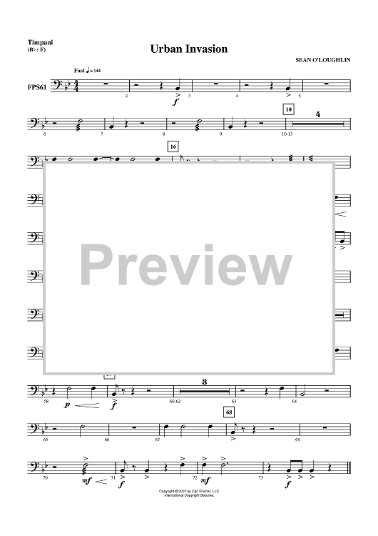 Digital Sheet Music for Urban Invasion - Timpani by Sean O'Loughlin scored for Concert Band; id:407456