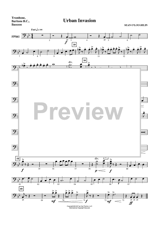 Digital Sheet Music for Urban Invasion - Trombone by Sean O'Loughlin scored for Concert Band; id:407452