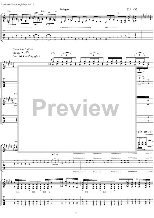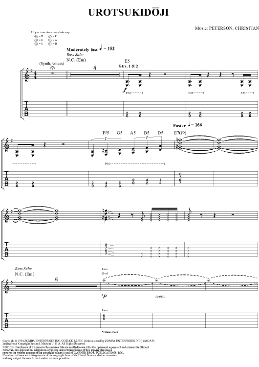 Digital Sheet Music for Urotsukidoji by Eric Peterson, Greg Christian, Testament scored for Guitar Tab; id:120131